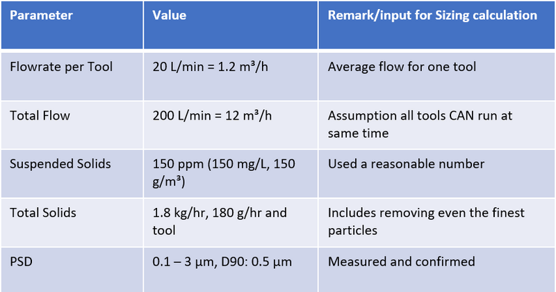 Table 1 shows fluid consumption and solids characterization, from which key decision points can be derived.