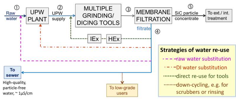 To summarize, treating wastewater effluent from SiC disintegration processes can be achieved with a decentralized multiple unit approach. With this approach, footprint and maintenance access will consume cleanroom space and workforce.