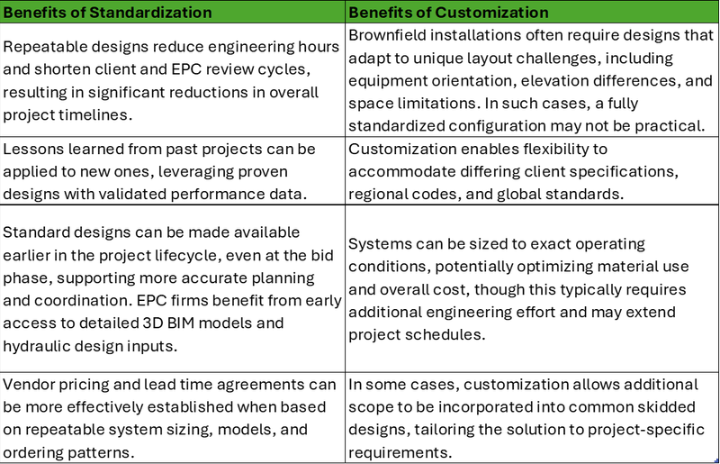 2. There appears to be a greater opportunity to implement standard designs if well-defined into new greenfield projects than within expansions in a brownfield installation. In brownfield expansions, space constraints and the need to align with existing equipment often limit standardization potential.