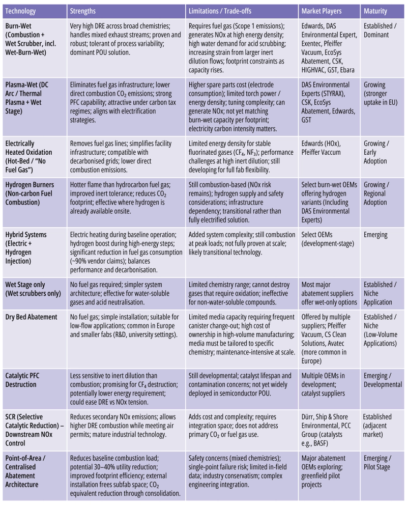 Yet despite its maturity, the sector is entering a period of renewed scrutiny. External pressures are forcing fabs and suppliers to reassess long-standing assumptions and explore alternative technologies. While alternatives to burn-wet systems do not yet meet the full range of abatement requirements, customer interest is accelerating development and driving innovation to close those gaps. Mark Lowing, Senior Process Engineer at Jacobs Engineering described waste gas treatment is often viewed as a non-value-adding function within the fab. Investment is therefore typically driven less by proactive optimisation and more by regulatory compliance, safety and reliability concerns, or opportunities to simplify operations.